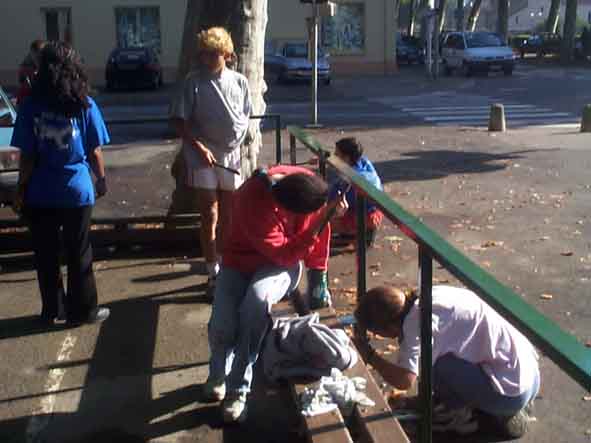 Le soleil se lève éclairant la bonne humeur et le sérieux de ce chantier boulodrome...